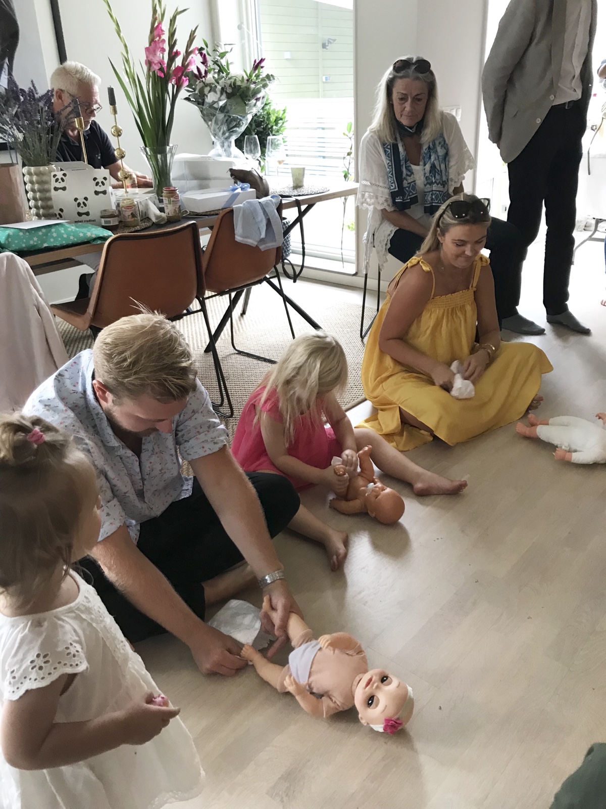Efter veckor av hemlig planering var det äntligen dags för babyshower för barnbarn nummer två. Angelica blev utlurad på brunch med en kompis medan vi riggade upp allt hemma hos henne. Jag och Bella hade fixat mat och dekorationer och denna gång bjöd vi in familj och vänner till både Angelica och Hannes. Det visste inte Hannes, så det blev lite en överraskning för honom också. Och Hannes, stackaren, blev dessutom utsatt för den klassiska barnmatsprovningen med förbundna ögon. Krämig laxpasta och katrinplommon-puré var tydligen ingen smaksensation, haha. Kul och lyckad tillställning blev det i alla fall. /Maria <3