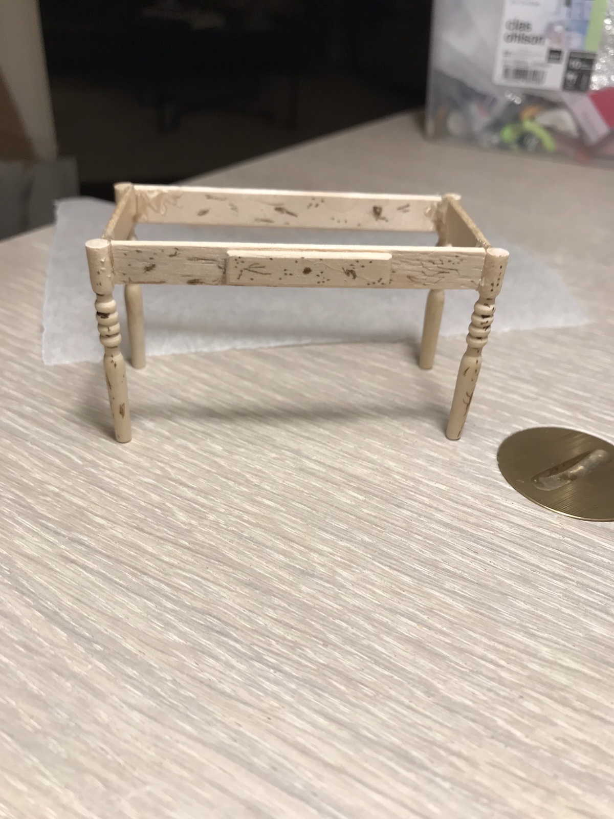 Här är underredet. Benen har jag som sagt köpt färdiga och bara slipat ner i rätt höjd. Övriga delar är av glasspinnar.