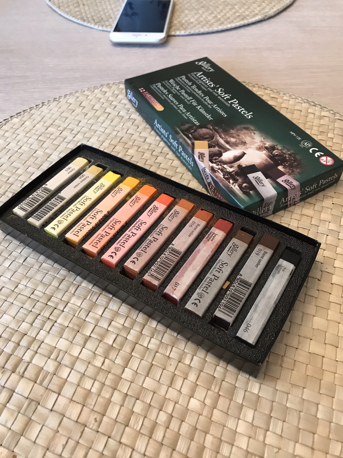 Soft pastell, jag skrapar av färg från kritan och doppar en fuktig pensel i pulvret och sätter igång…