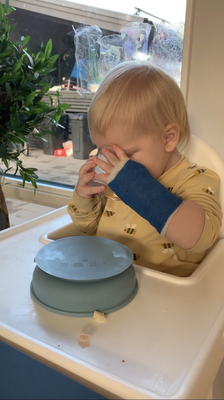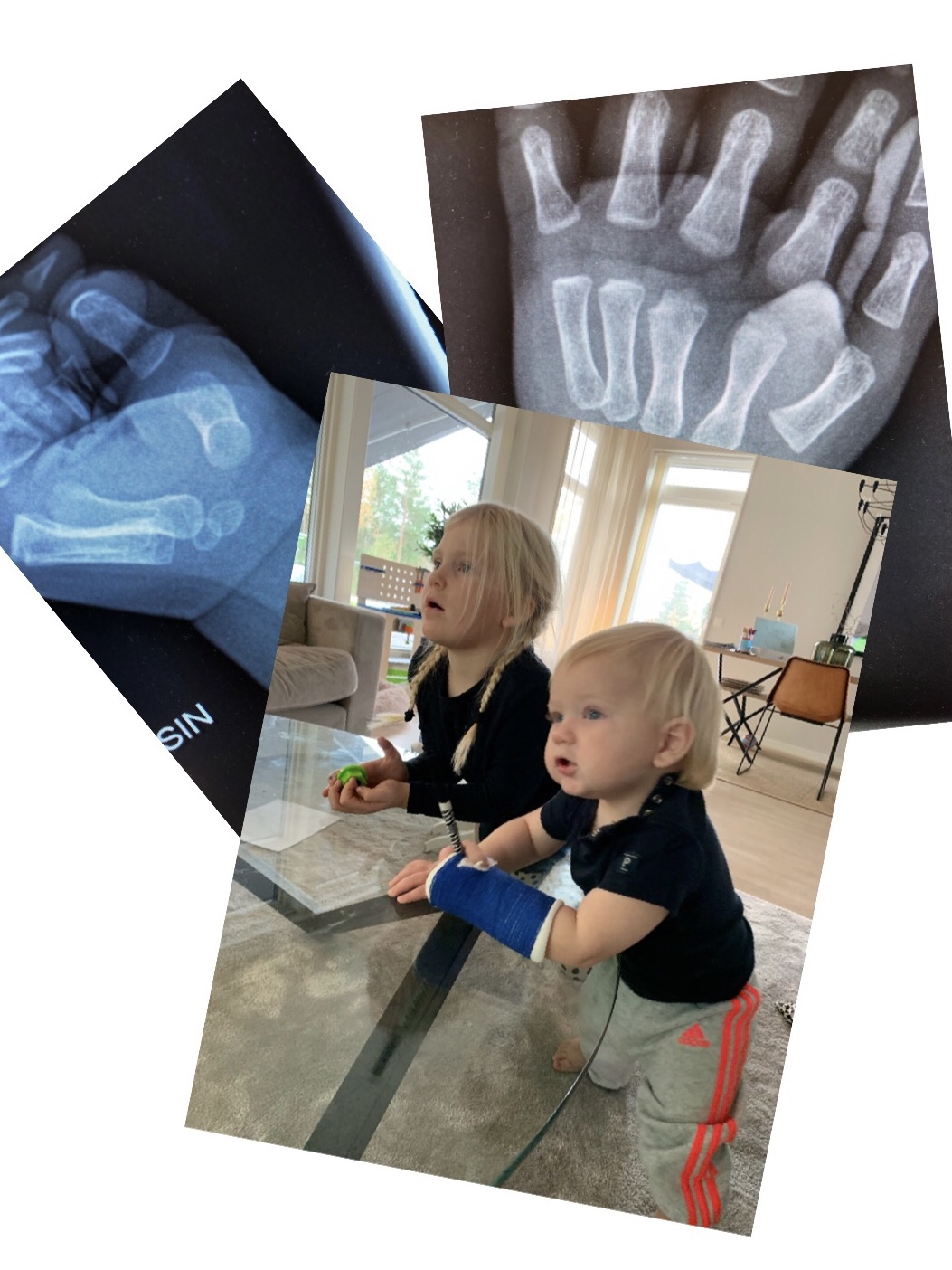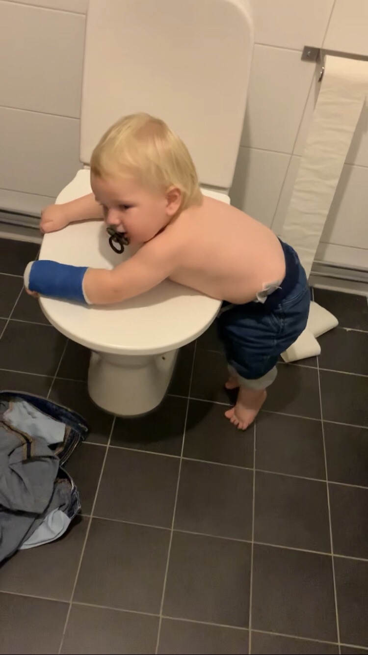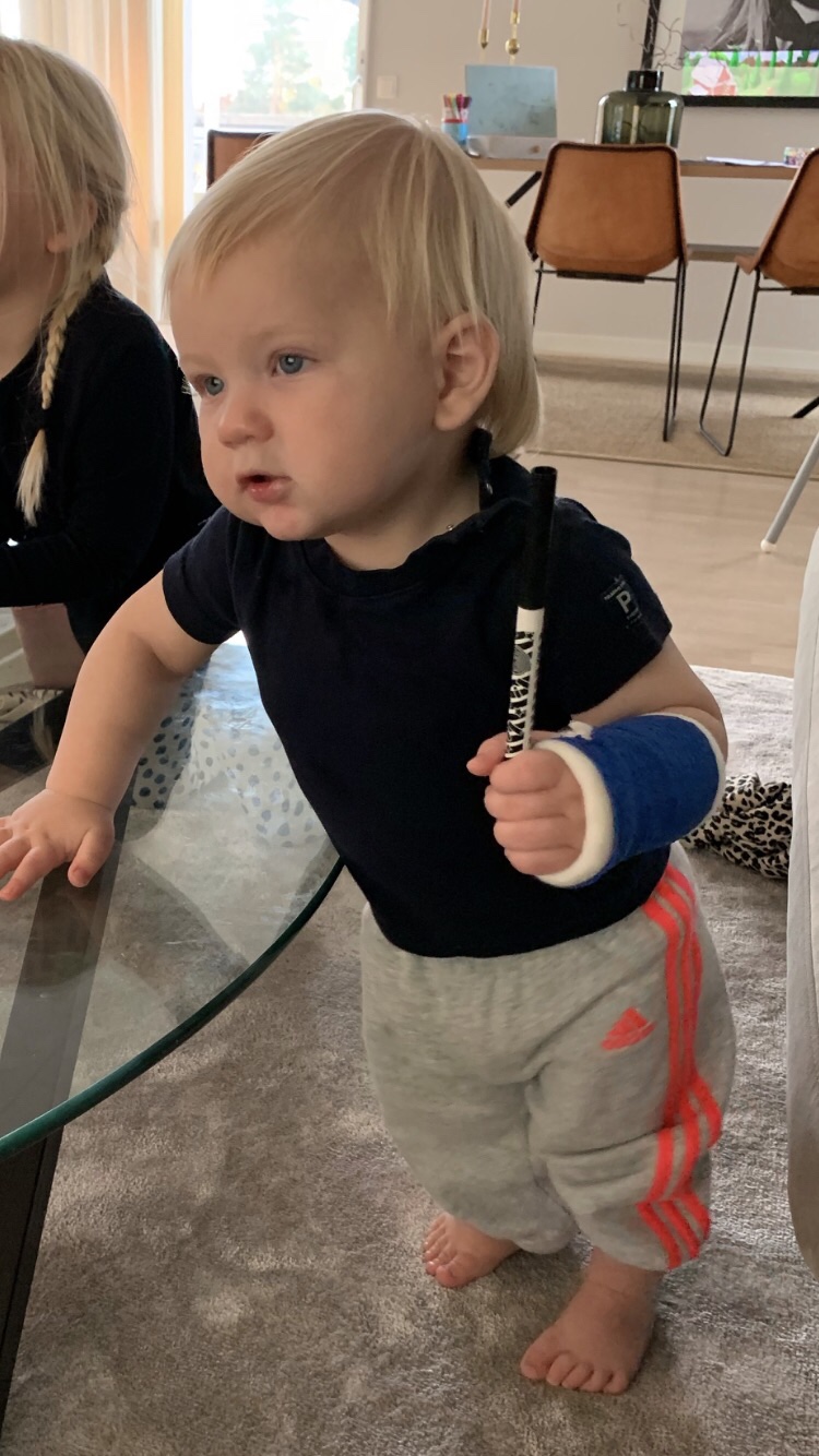 Den här gosiga lilla killen är det full rulle på. För ett par veckor sedan klängde han upp på vardagsrumsbordet. Gick hur snabbt och lätt som helst. Lika snabbt, men inte lika smidigt, ramlade han ner och tog emot sig med lilla armen. Tre veckor i gips. Det låter nu inte lilla Matheo påverka tillvaron i nån särskilt hög utsträckning. Han lever på som vanligt. Gullunge! <3.