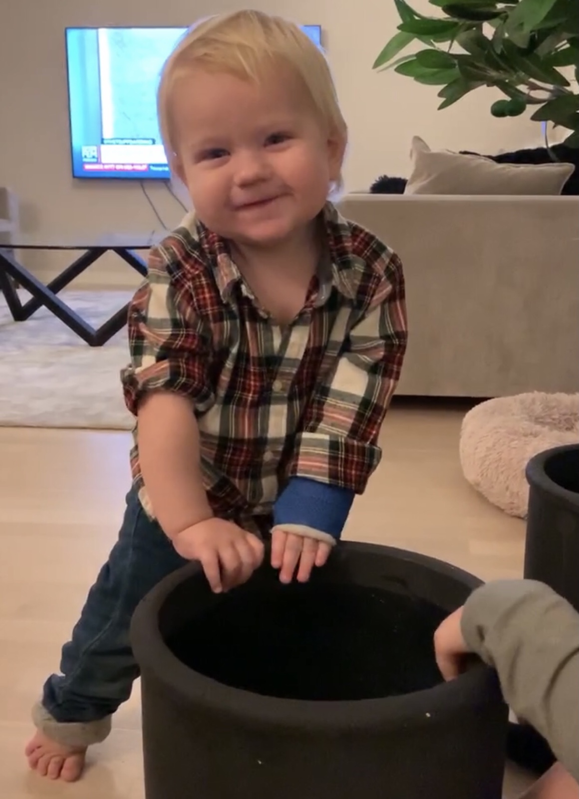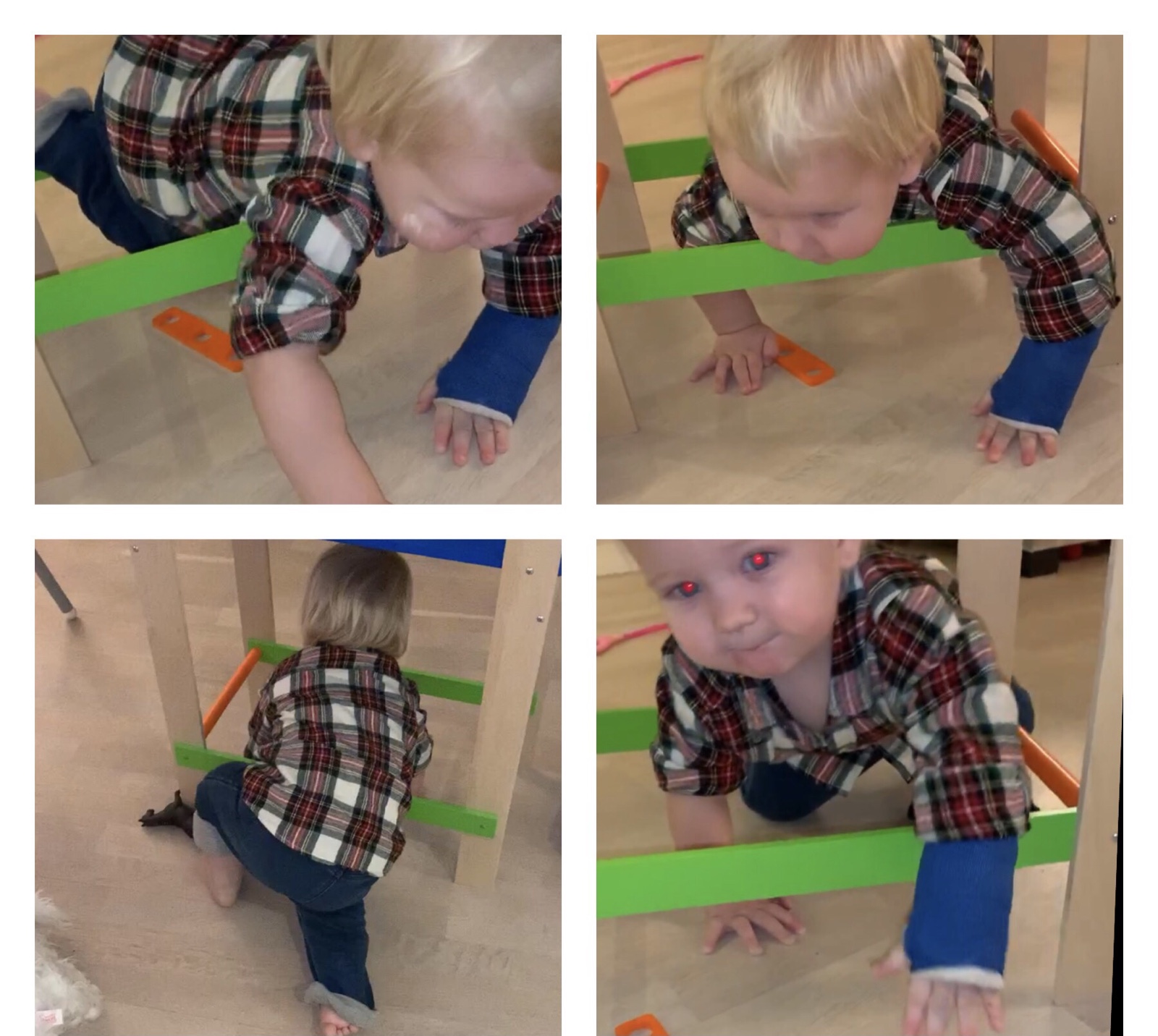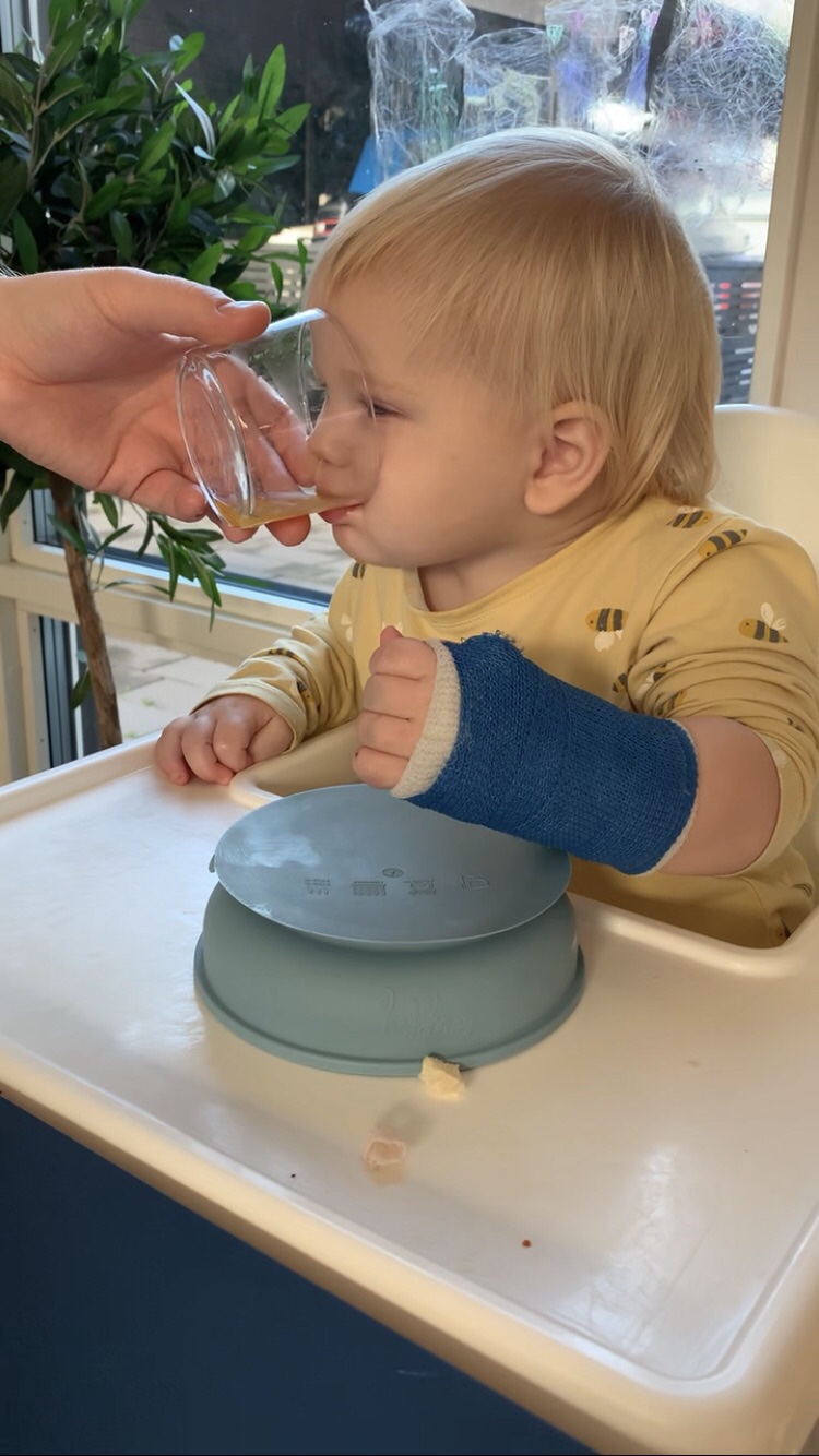 Den här gosiga lilla killen är det full rulle på. För ett par veckor sedan klängde han upp på vardagsrumsbordet. Gick hur snabbt och lätt som helst. Lika snabbt, men inte lika smidigt, ramlade han ner och tog emot sig med lilla armen. Tre veckor i gips. Det låter nu inte lilla Matheo påverka tillvaron i nån särskilt hög utsträckning. Han lever på som vanligt. Gullunge! <3.