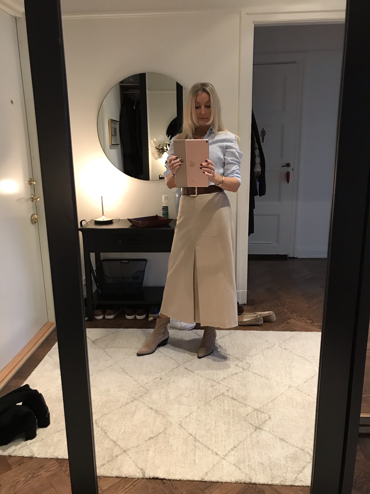 Blev riktigt förtjust när jag hittade den här kjolen på Zalando. Den kommer från Massimo Dutti och jag valde idag att styla med blå skjorta. Men lika snyggt med stickad tröja eller t-shirt. /Lite i dyraste laget men det känns som att jag kommer kunna använda den mycket på kontoret. Maria <3