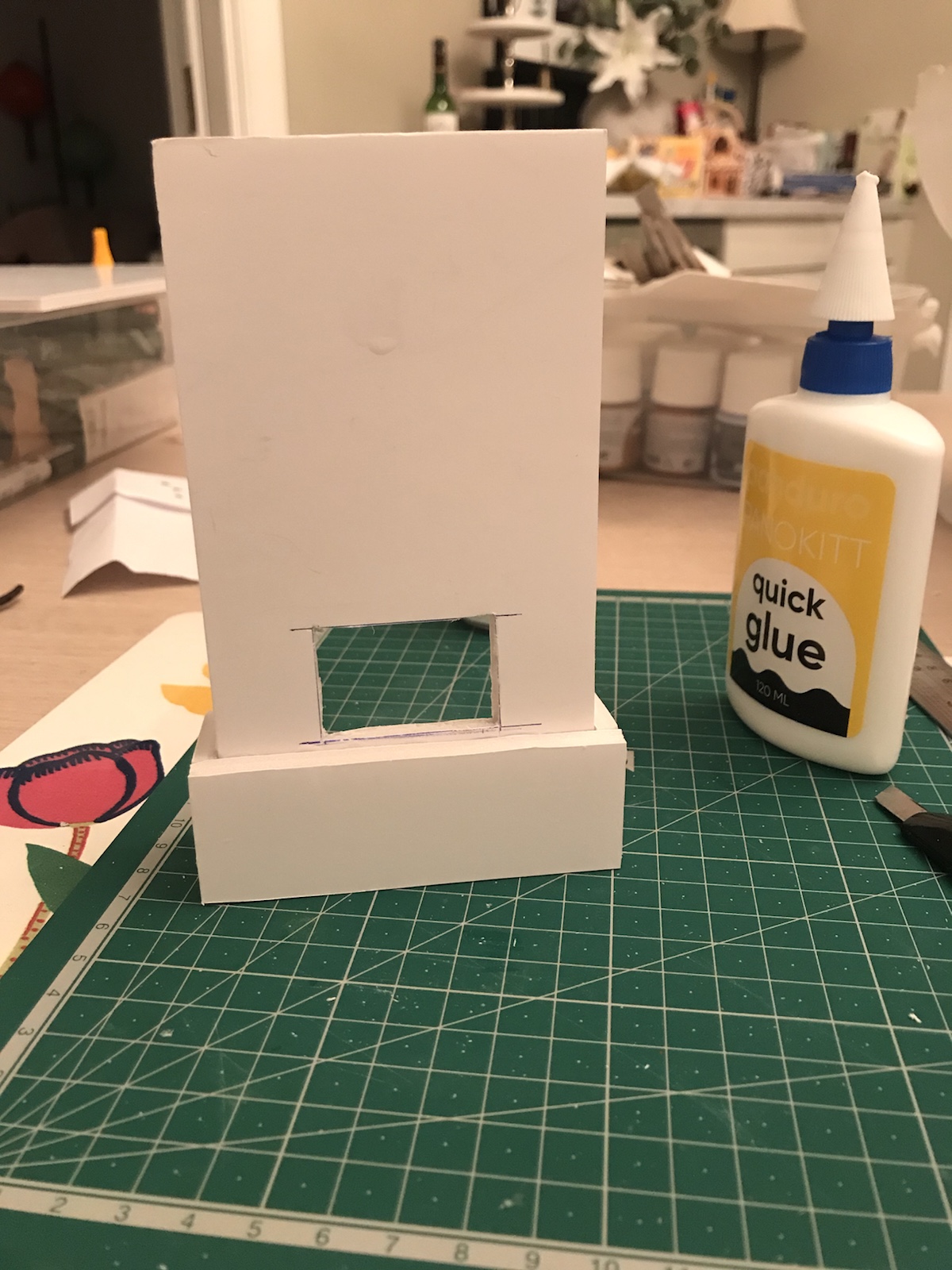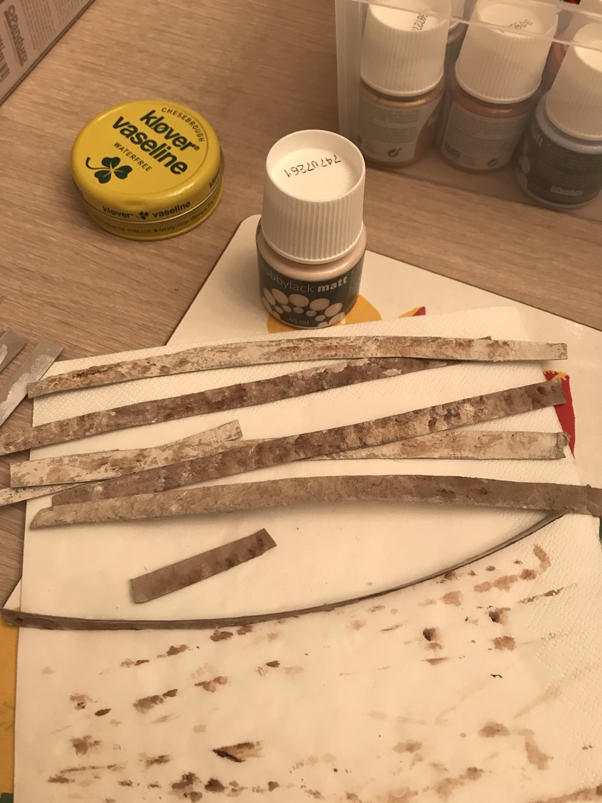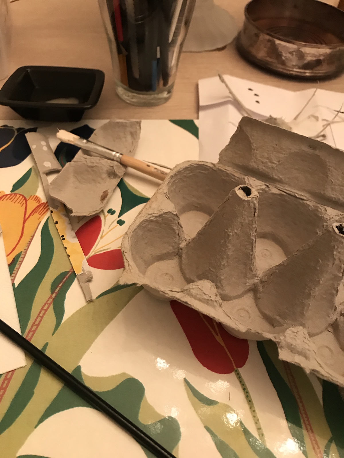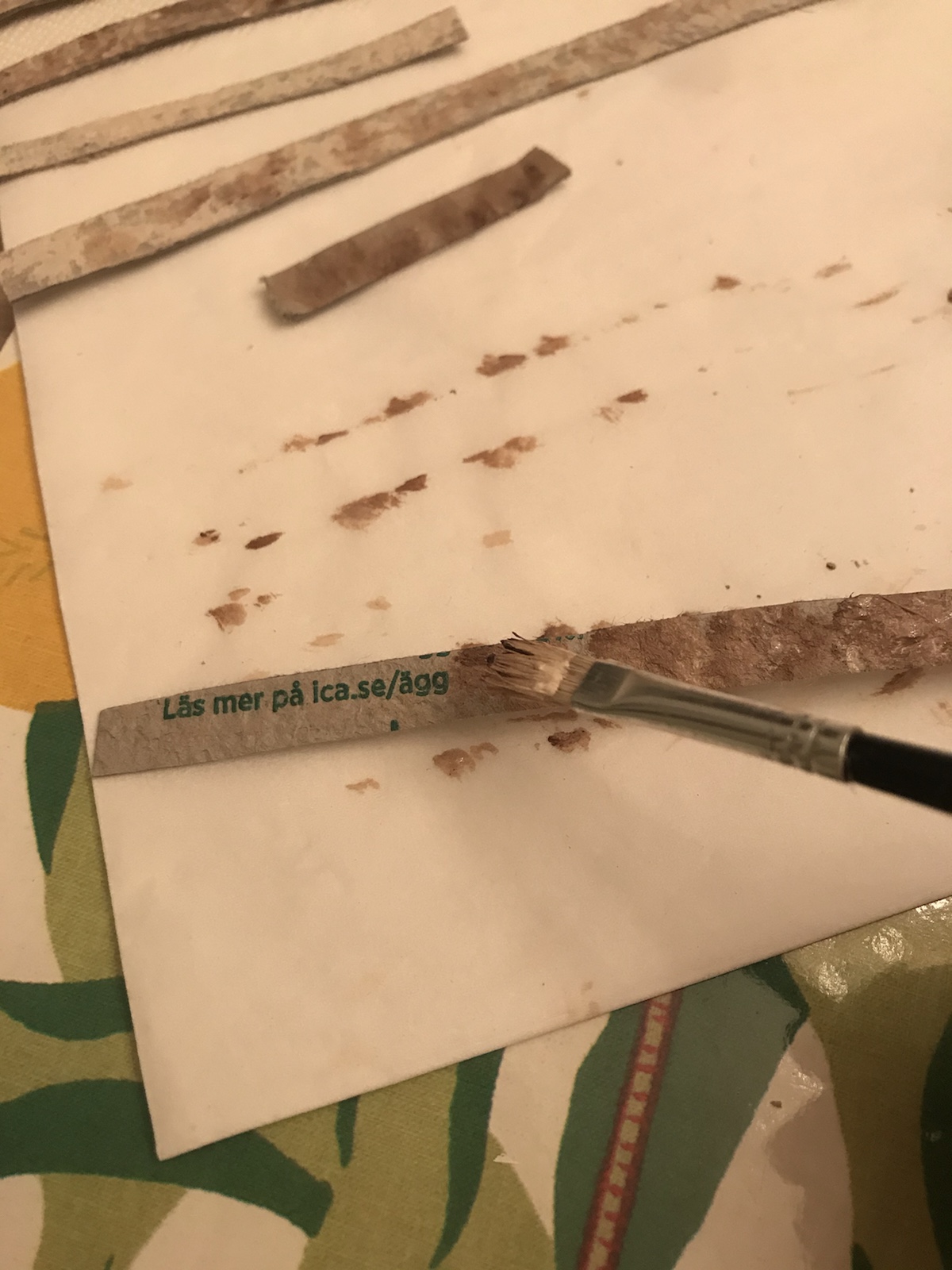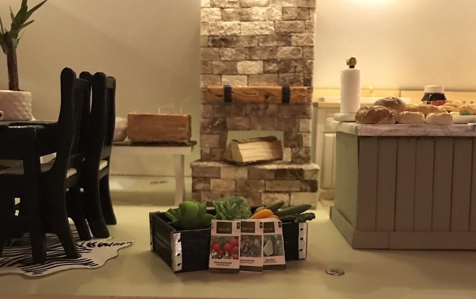 Blev inspirerad av en bild på en härlig murad eldstad, typ sån jag tänker att varje ”liten stuga” i Aspen har, och tänkte att en sån vill jag göra till dockhuset. Sagt och gjort, hittade en nästan tom äggkartong (gjorde muffins på äggen) och började klippa remsor av locket. Den skrovligaste sidan målade jag sen i beige och bruna toner. Jag använde brun akrylfärg och en ljusare beige vattenbaserad hobbyfärg. Duttade ”slarvigt” på färgen för att det skulle naturligt ut. Sen klippte jag bitar av remsorna och började ”mura” upp ”stenarna”. Stommen gjorde jag av foamboard (finns på Panduro bl a). /Maria <3