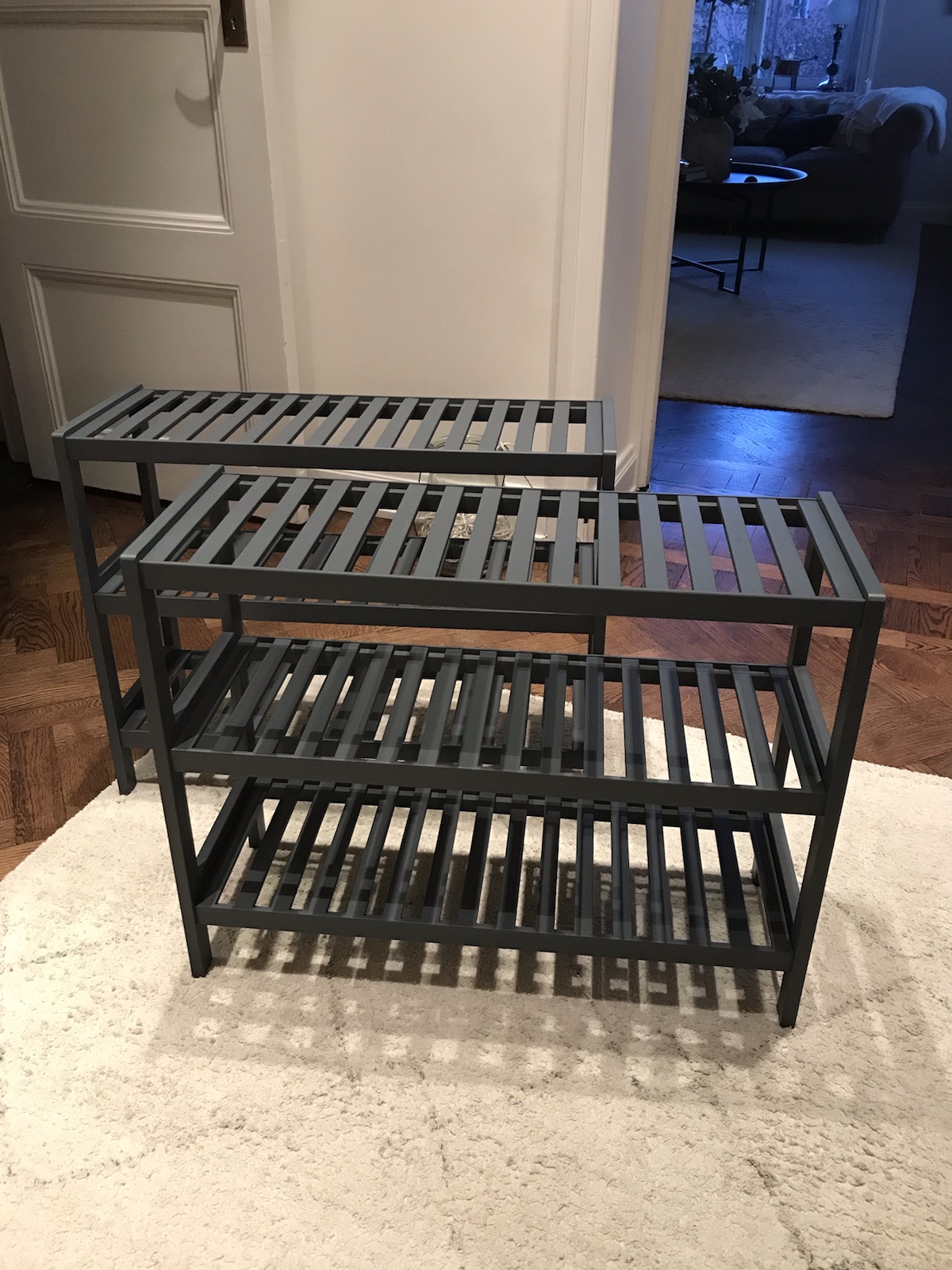Så för att organisera och använda ytan bättre klickade jag hem två stycken skohyllor HÄRIFRÅN och blev jättenöjd med dem. UPPDATERING, produkten verkar vara ersatt med en helt annan hylla men här: