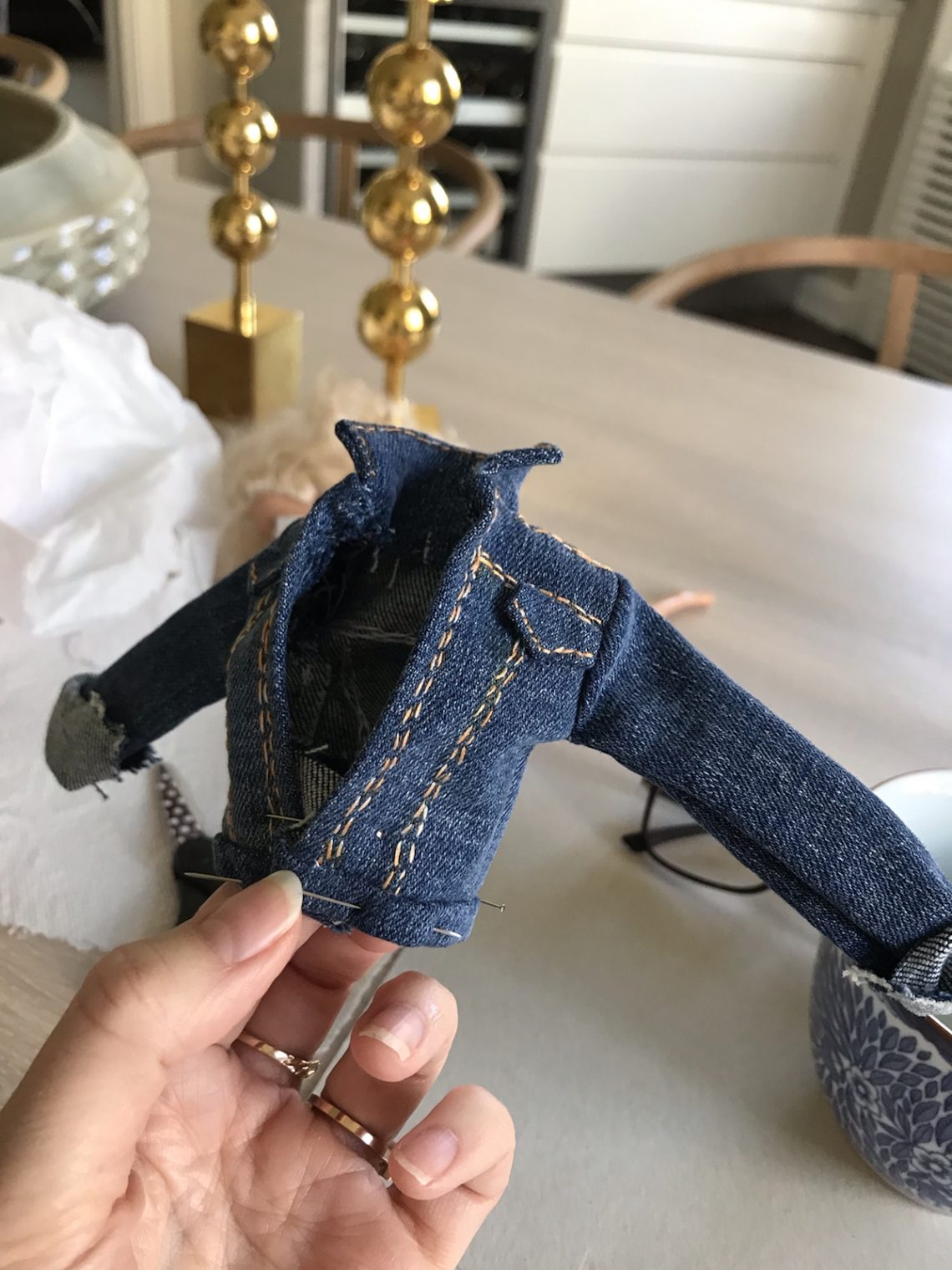 Jag gillar ju att pyssla, som ni nog vet vid det här laget. För tillfället har Nonnos och mitt dockhus-projekt lagts åt sidan för ett annat. Nu är det nämligen barbiekläder för hela slanten. Jätteroligt att få en idé som man sen genomför, ibland med ett gott resultat och ibland blir det bara pannkaka. Nonno har i alla fall en så härlig tilltro till min förmåga och beställer både det ena och det andra i klädväg. Senaste önskemålet är ett par jeans (!!!), ”Det fixar du, mormor”. Mm, jag får väl göra mitt bästa. /Maria <3 Här blev det pannkaka, tyget räckte inte till.